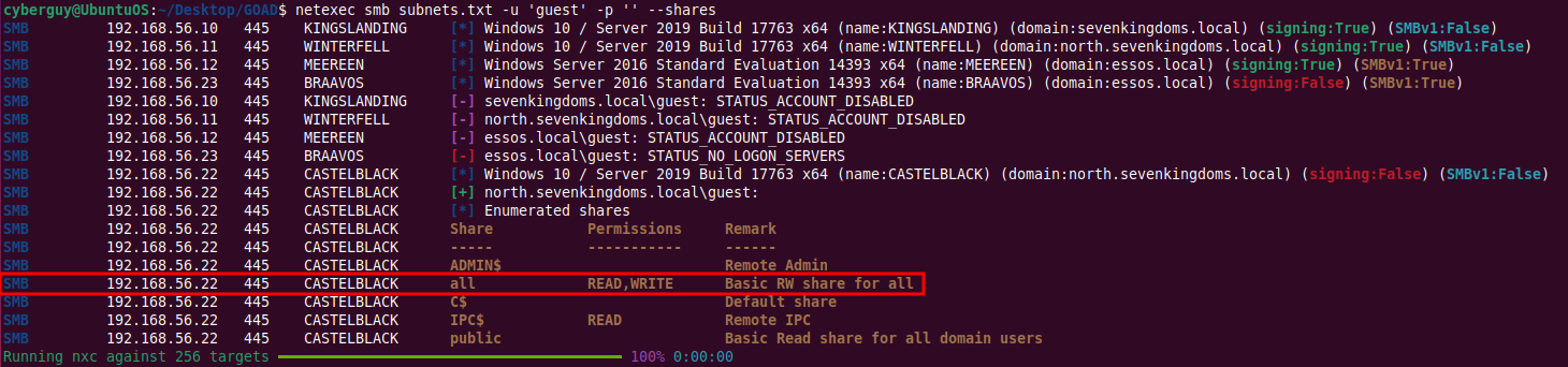 netexec smb subnets.txt -u 'guest' -p '' --shares