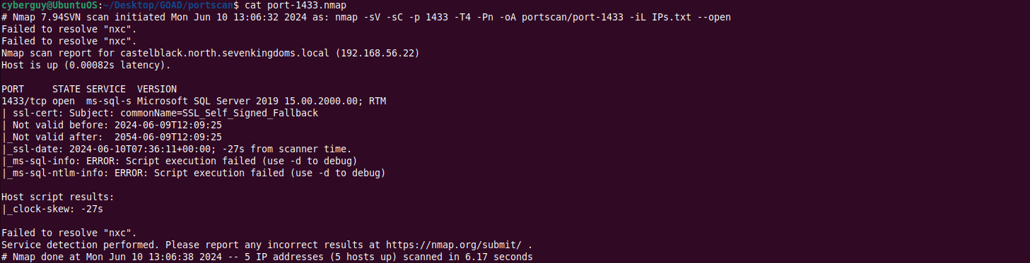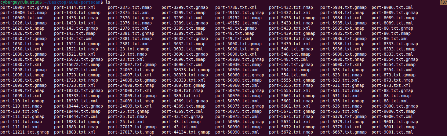 cat ports.txt | xargs -I {} nmap -sV -sC -p {} -T4 -Pn -oA portscan/port-{} -iL IPs.txt --open