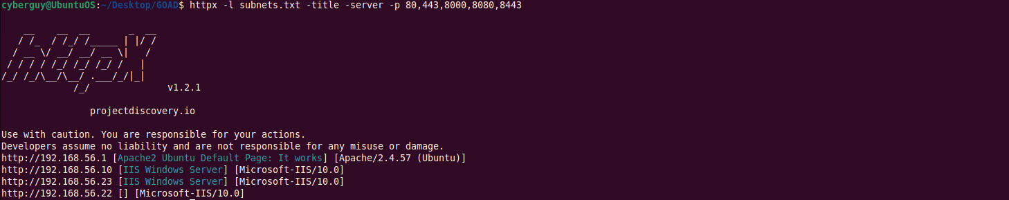 httpx -l subnets.txt -title -server -p 80,443,8000,8080,8443